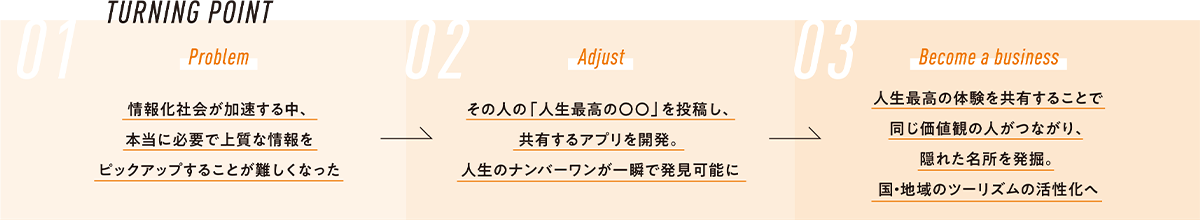 その人だけが知る“人生最高” の場所を共有できる独自のプラットフォームを開発。持続可能な観光の未来を切り拓く。